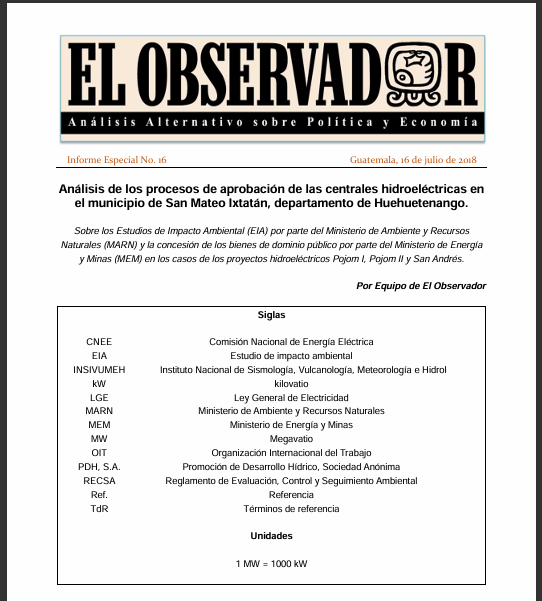 Informe Especial No. 16-Análisis de los procesos de aprobación de las centrales hidroeléctricas en el municipio de San Mateo Ixtatán, departamento de Huehuetenango