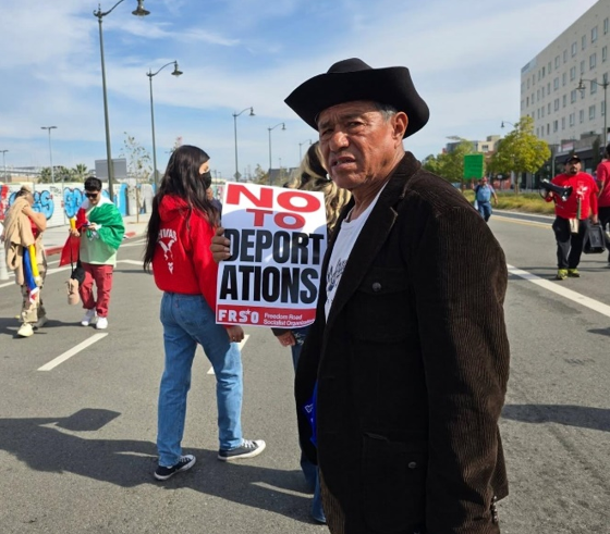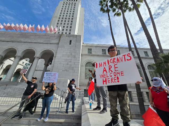 Marcha en Los Ángeles, California, el 8 de febrero de 2025, frente al ayuntamiento de la ciudad. Foto: José Cubur.