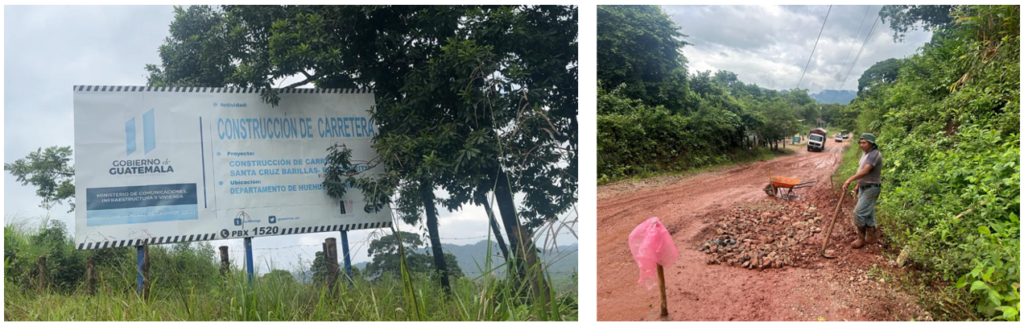 Han sido años de espera y no ha ocurrido más que una ampliación de la vía que provocó destrucción, según denuncian comunitarios. En agosto de 2020, el Ministerio de Comunicaciones, Infraestructura y Vivienda (CIV), durante el gobierno de Alejandro Giammattei Falla (enero 2020 – enero 2024) y el partido Vamos, adjudicó el proyecto de asfaltado de la vía de 25.5 kilómetros de largo que comunica Santa Cruz Barillas con Río Espíritu, en el norte de Huehuetenango. Un mes después, en septiembre, se firmó el contrato, y cuatro meses después, en diciembre de 2020, esa cartera dio un anticipo de Q 28.5 millones y eso fue todo, pues la obra fue suspendida.