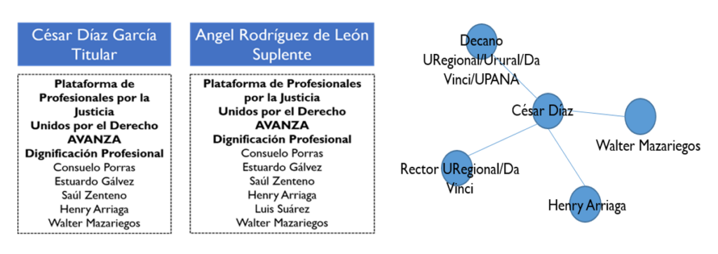 Aunado a esto, la planilla cuenta con respaldo de funcionarios y servidores públicos del sistema de justicia y de otros sectores académicos de algunas facultades de derecho del sector privado, particularmente de la Universidad Regional liderada por el actual decano, Luis Felipe Lepe Monterroso, a quien también se le vincula con la planilla del ex rector Gálvez Barrios.