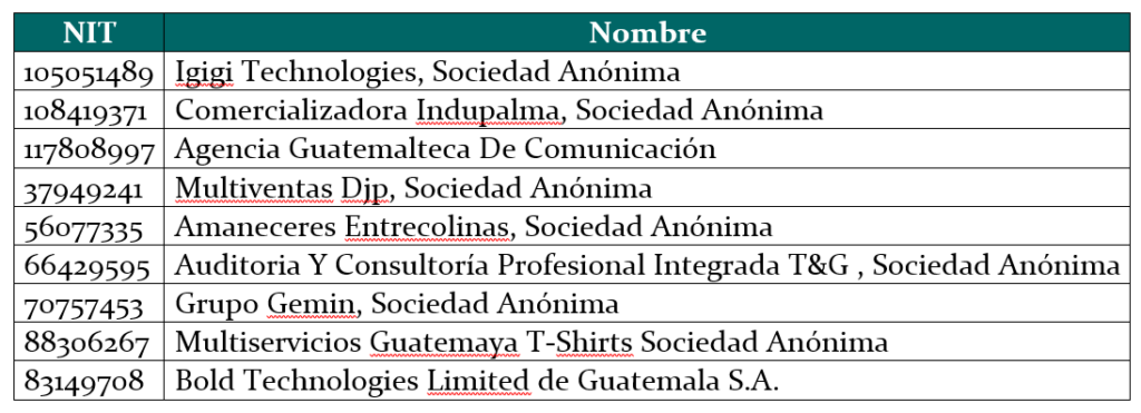 El análisis empresarial verificó que ha constituido seis sociedades entre las cuales destacan tres por su papel como contratistas del Estado, con montos que superan los Q 20 millones y con contratos activos vigentes, siendo éstas: