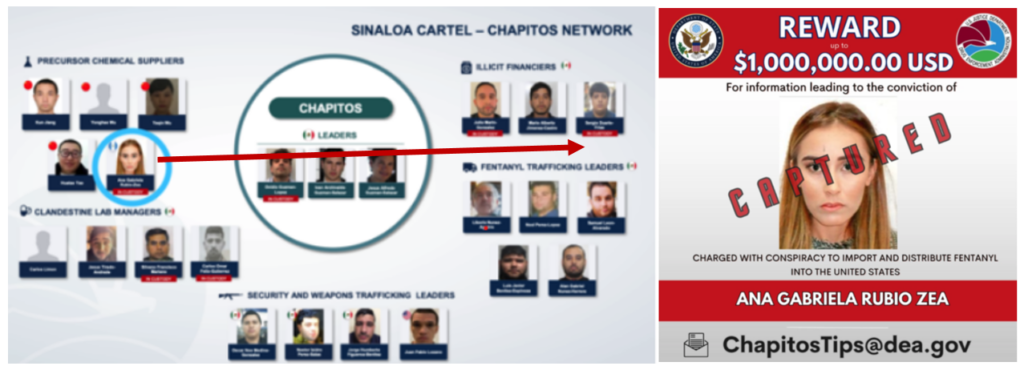 Afiche del departamento de Estado sobre la captura de Ana Gabriela Rubio Zea y red de “Los Chapitos”