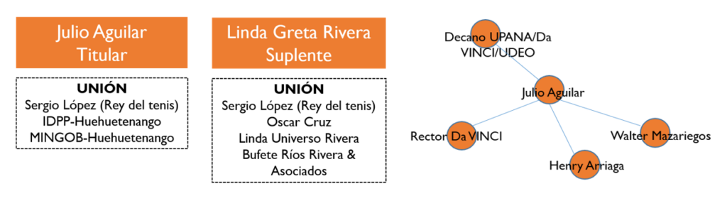 Como candidata a Comisionada Suplente está Linda Greta de los Ángeles Rivera Pérez, quien a través de su familia registra múltiples participaciones políticas y una fuerte vinculación a López Villatoro. De ser electos, es altamente probable que voten en conjunto con Walter Mazariegos y Henry Arriaga por perfiles no idóneos para el TSE.