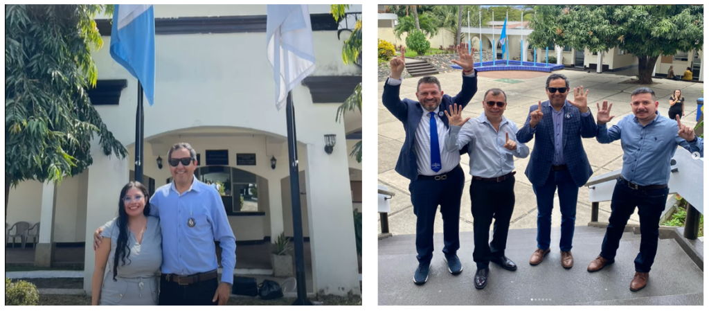 En la foto de la izquierda, María Alicia Ovalle Gramajo de García junto a Walter Mazariegos, Wilson Joel López y Dennis Billy Herrera Arita; en la foto de la derecha, María Alicia Ovalle Gramajo junto a la magistrada, Claudia Paniagua, en evento de ASPA.
