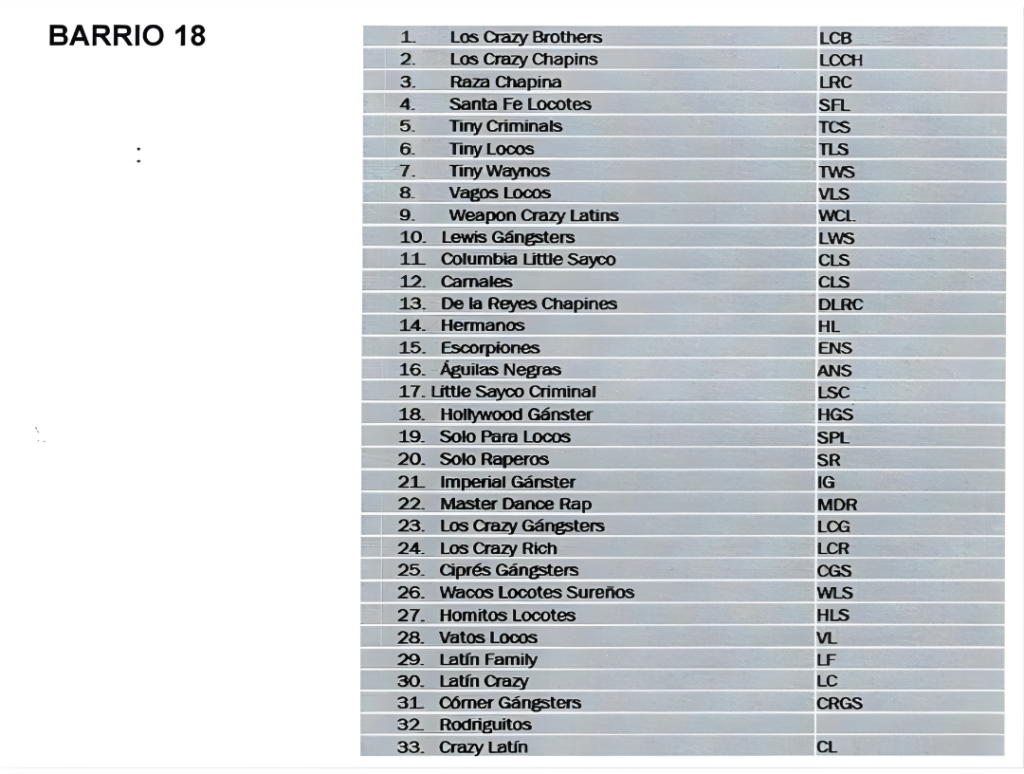 Fuente: Departamento de Análisis de la Información. División Nacional contra el Desarrollo Criminal de las Pandillas. Subdirección General de Investigación Criminal. Policía Nacional Civil (PNC).