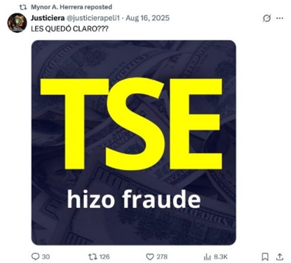 No se trata de un error individual, sino de un patrón político. La narrativa de fraude no es espontánea ni marginal; es un recurso estratégico para deslegitimar gobiernos electos, justificar bloqueos institucionales y preparar el terreno para salidas autoritarias. Que actores asociados a esa narrativa busquen incidir en la conformación del TSE, no es accidental.