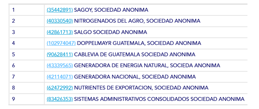 En el caso del directivo hondureño Erick Josué Spears Ramos, aparece como representante de dos empresas en Guatemala: Aluminios y Techos Guatemala, S.A., una subsidiaria de la hondureña Alutech S.A. de Capital Variable, con decenas almacenes y bodegas en Guatemala; y Altos Hornos de Guatemala, S.A.