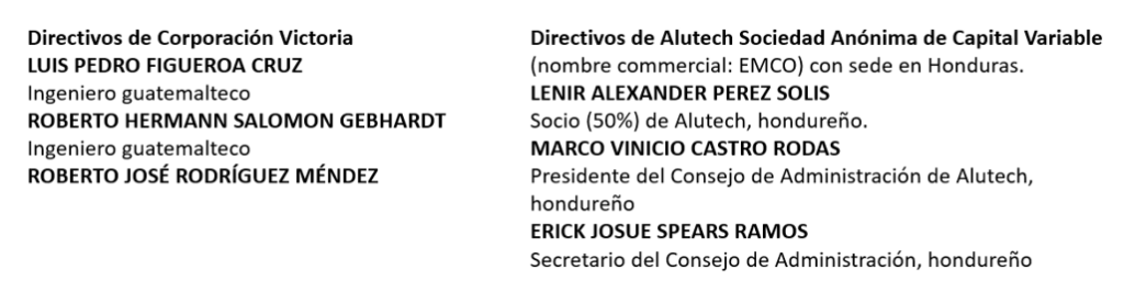 Como se observa en los antecedentes del proyecto publicados por la Municipalidad de Guatemala, la adjudicación definitiva ocurrió el 23 de diciembre de 2020. Pocos días después, el 28 de diciembre de 2020, se constituyeron dos entidades fuera de plaza en Panamá por parte de los representantes guatemaltecos de la Corporación Victoria, y un grupo de reconocidos empresarios y directivos hondureños de Alutech Sociedad Anónima de Capital Variable.