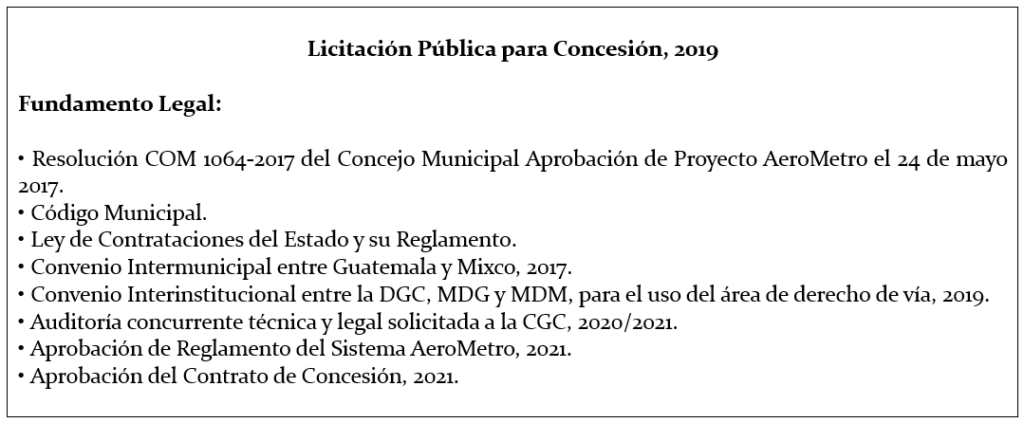 Dicho documento forma parte de la documentación contenida en Guatecompras, bajo el NOG 10972013 referente a la CONCESIÓN PARA LA IMPLEMENTACIÓN DE UN SISTEMA DE TRANSPORTE PÚBLICO POR CABLE AÉREO TIPO TELEFÉRICO (AEROMETRO) FASE I EN LOS MUNICIPIOS DE GUATEMALA Y MIXCO.