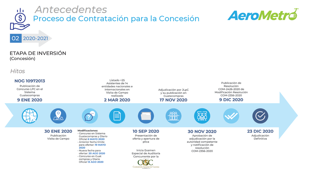 En un documento del Concejo Municipal de diciembre de 2020, se dio a conocer que la Junta de Licitación decidió adjudicar al “Grupo mancomunado y solidario integrado” por las sociedades CABLEVÍA DE GUATEMALA, SOCIEDAD ANÓNIMA; DESARROLLOS RESIDENCIALES VICTORIA, SOCIEDAD ANÓNIMA; DESARROLLOS TORINO, SOCIEDAD ANÓNIMA; y, DOPPELMAYR GUATEMALA, SOCIEDAD ANÓNIMA.