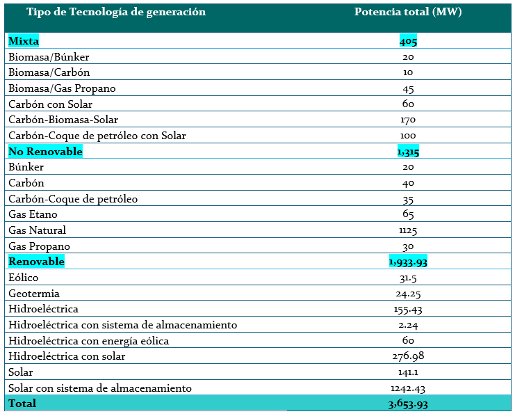 En total, se presentaron 99 plantas de generación, entre nuevas, en operación y en combinaciones tecnológicas.
