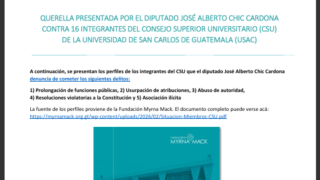 Querella presentada por el diputado José Alberto Chic Cardona contra 16 integrantes del Consejo Superior Universitario (CSU) de la Universidad de San Carlos de Guatemala (USAC)